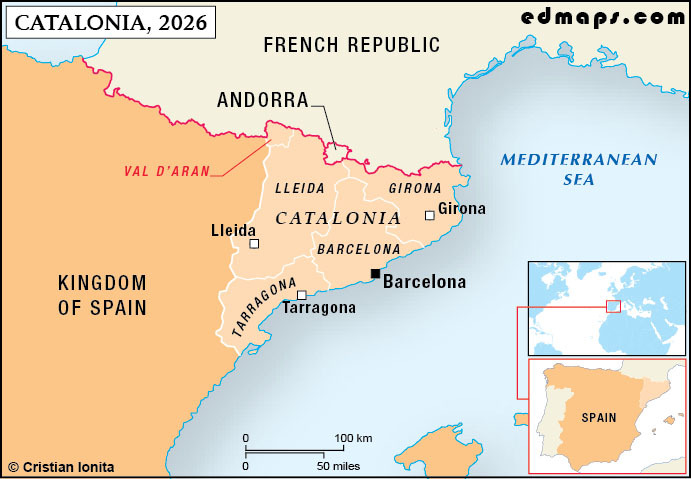 According to the Catalan nationalists, the Autonomous Community of Catalonia (often identified as “the Principality” in the nationalist discourse) represents only one of the Catalan lands or countries (Països Catalans). Technically, this term, Països Catalans, refers to all the territories where the Catalan language is spoken: Northern Catalonia (France), the Principality of Andorra, the Autonomous Community of Catalonia (without the Occitan-speaking area of Val d’Aran), Eastern Aragon (Franja de Ponent), the Eastern part of the Valencian Community, the small region of El Carxe (Murcia), the Balearic Islands, and the Italian town of Alghero (Sardinia). In other words, if the project of Catalonia’s secession is already a nightmare for the Spanish establishment, a union of all Catalan countries would certainly be an apocalyptic scenario for Madrid...