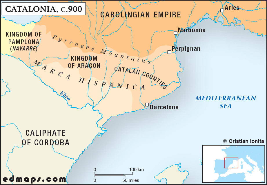 The birth of the Catalan polity is directly associated with the Carolingian Empire and its expansion across the Pyrenees Mountains.