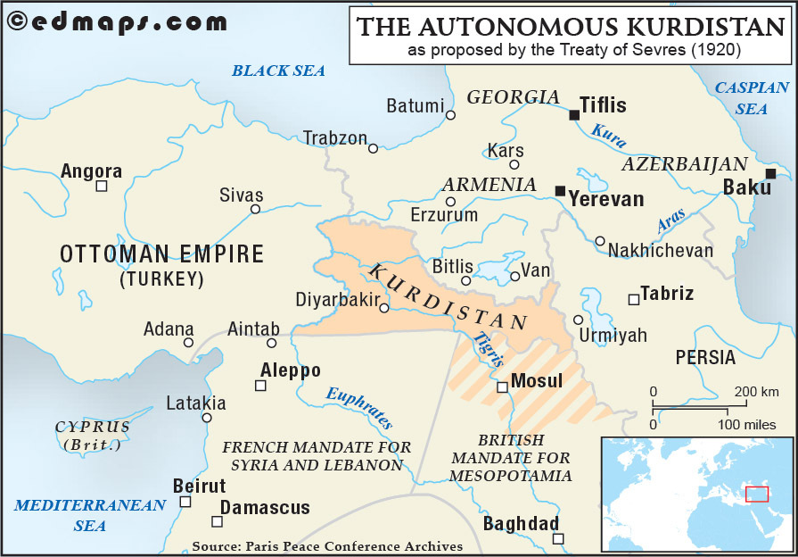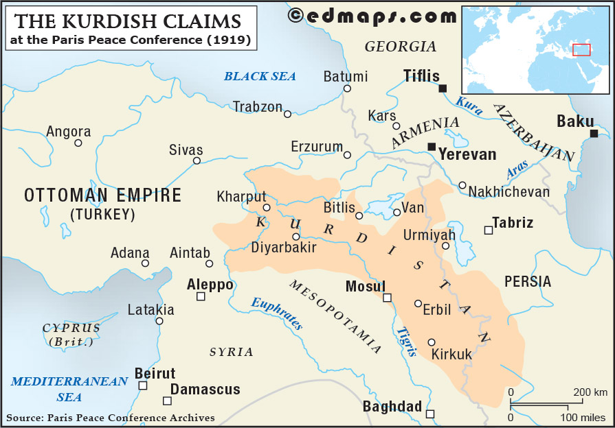 In spite of the Franco-British omission, the Paris Peace Conference of 1919-1920 has offered a chance to the Kurdish nationalists: between a larger and independent Wilsonian Armenia and the French and British mandates of Syria (and Lebanon) and Mesopotamia, there was a place to fill in for a small Kurdish entity.