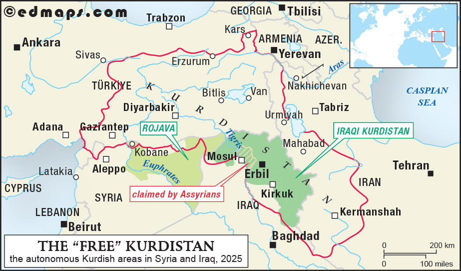 In Syria, after some victories against the DAESH, the Syrian Kurdistan (Rojava) has obtained a Kurdish administration and a de facto autonomous government.